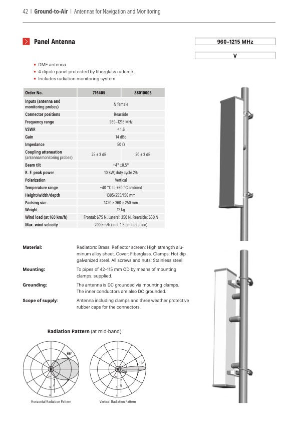 716405 - DME Panelantenne 960–1215 MHz 14 dBd – Med innebygd strålingsmonitorering - Kathrein Broadcast katalog